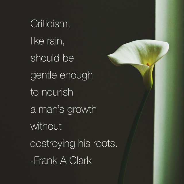 Constructive Criticism - comes from a place of love. Encourages self-reflection and improvement. Objective and well thought out. Presented in an encouraging manner.